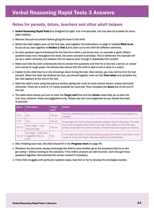 Aimed at children aged 8 to 8 years, Verbal Reasoning Rapid Tests Book 3 features: