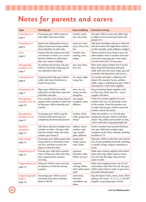 - Help their child gain confidence in key areas such as counting, shapes and measurement.