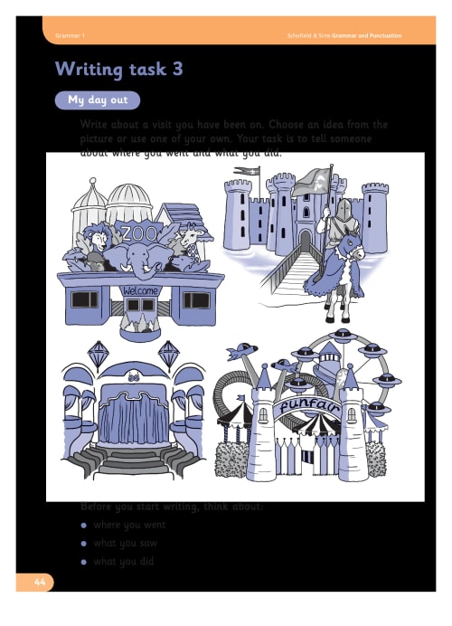 Introduces basic grammar concepts, including sentence structure and punctuation, through clear explanations and engaging exercises.