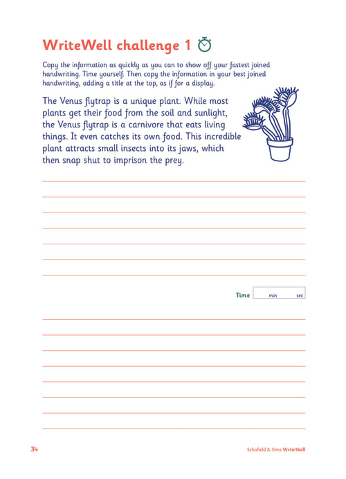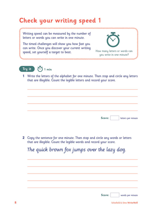 Helps children maintain legibility at speed by experimenting with changes to their joined style and completing timed activities.