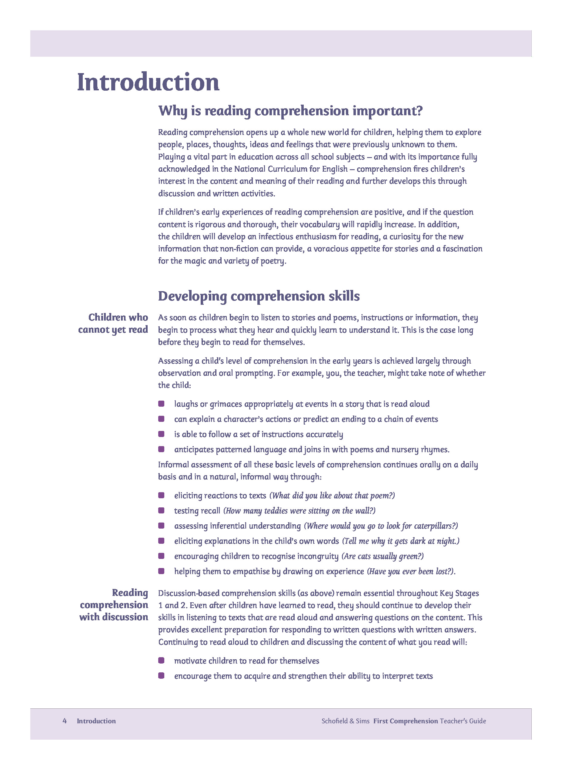 First Comprehension Teacher's Guide