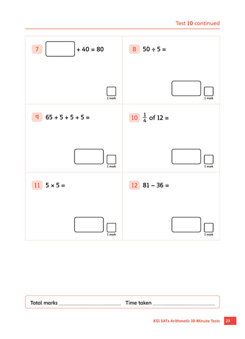 KS1 SATs Arithmetic 10-Minute Tests