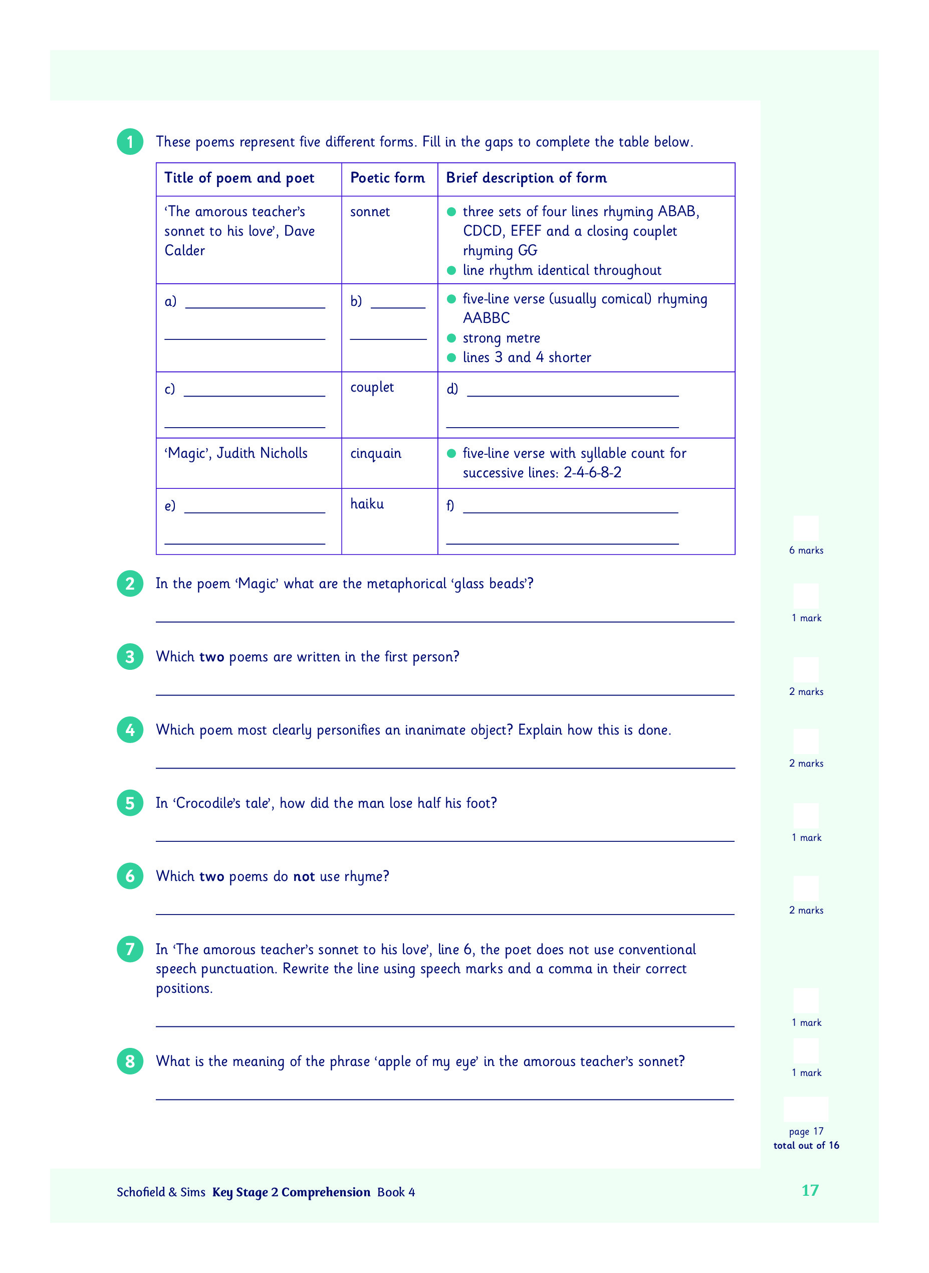 KS2 Comprehension 4: Year 6, Ages 10-11