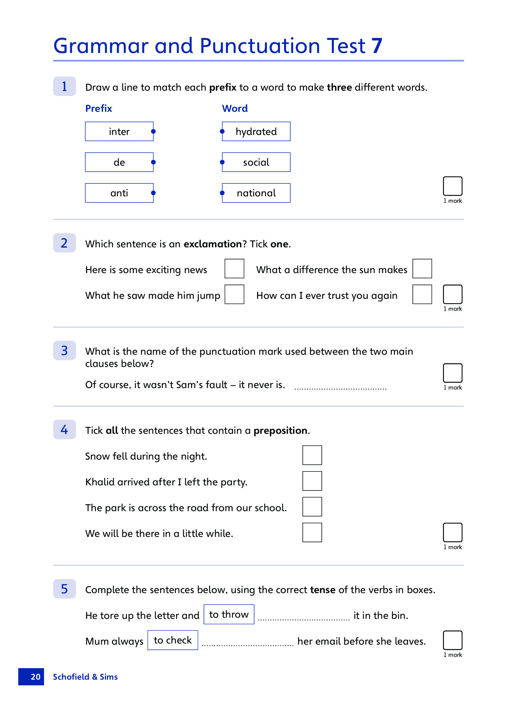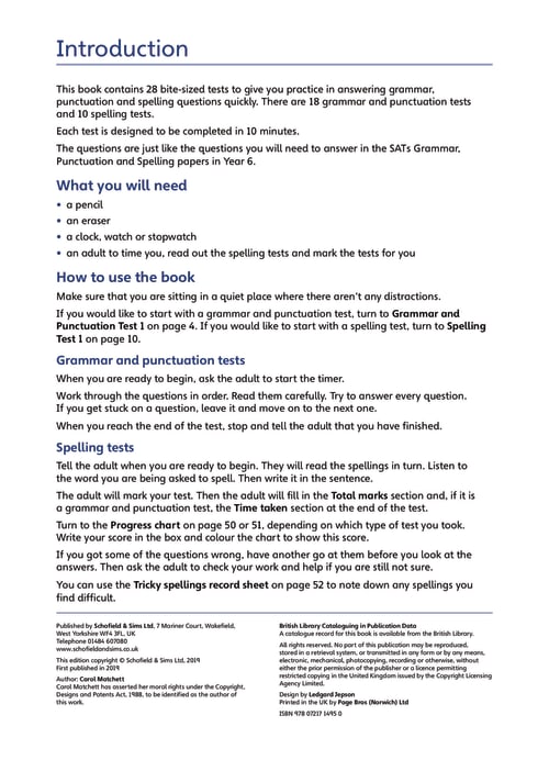 KS2 SATs Grammar, Punctuation and Spelling 10-Minute Tests