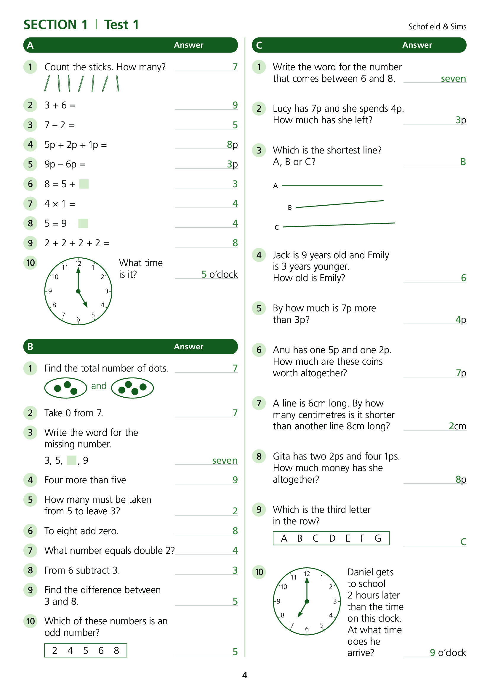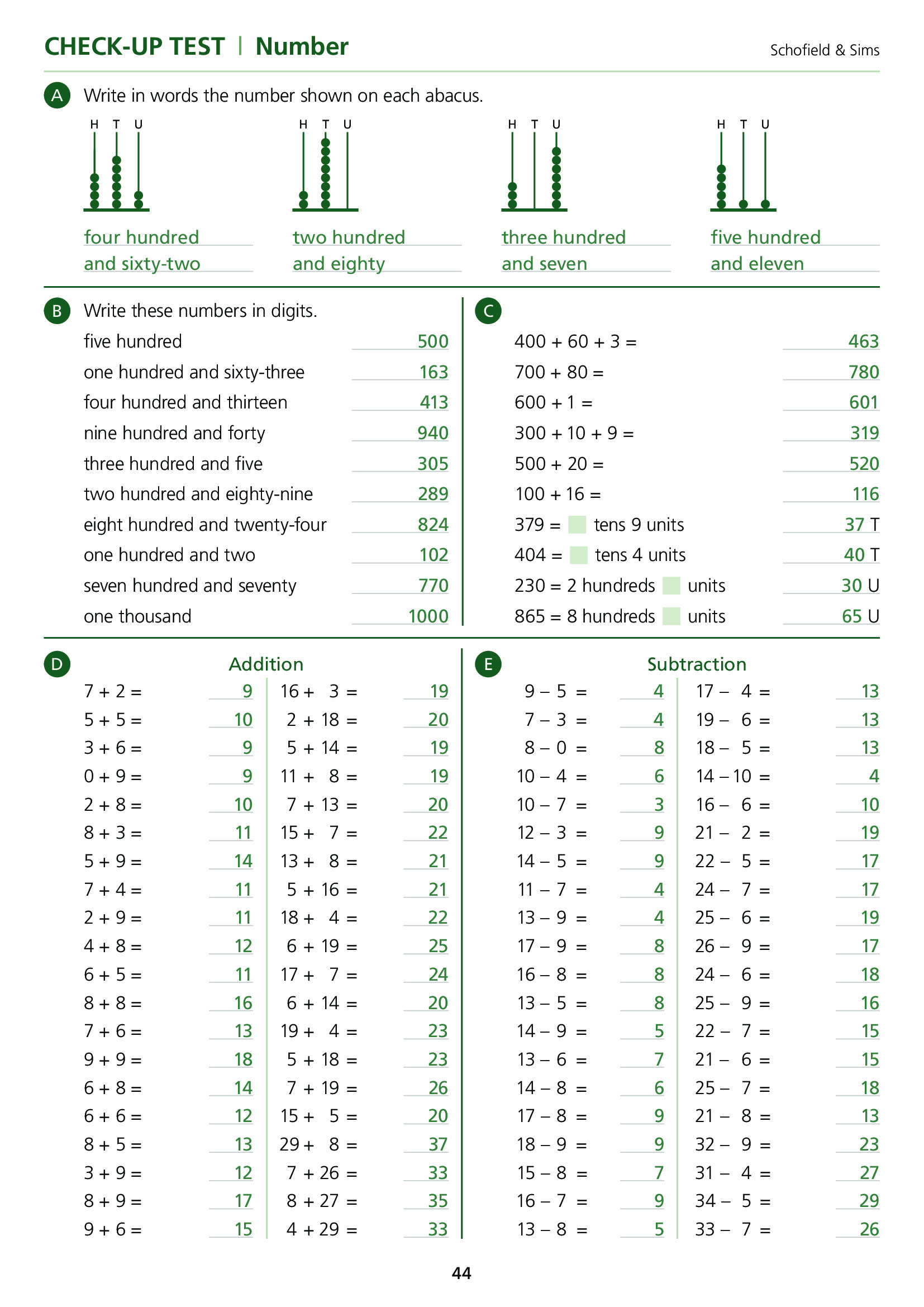 Mental Arithmetic 1 Answers