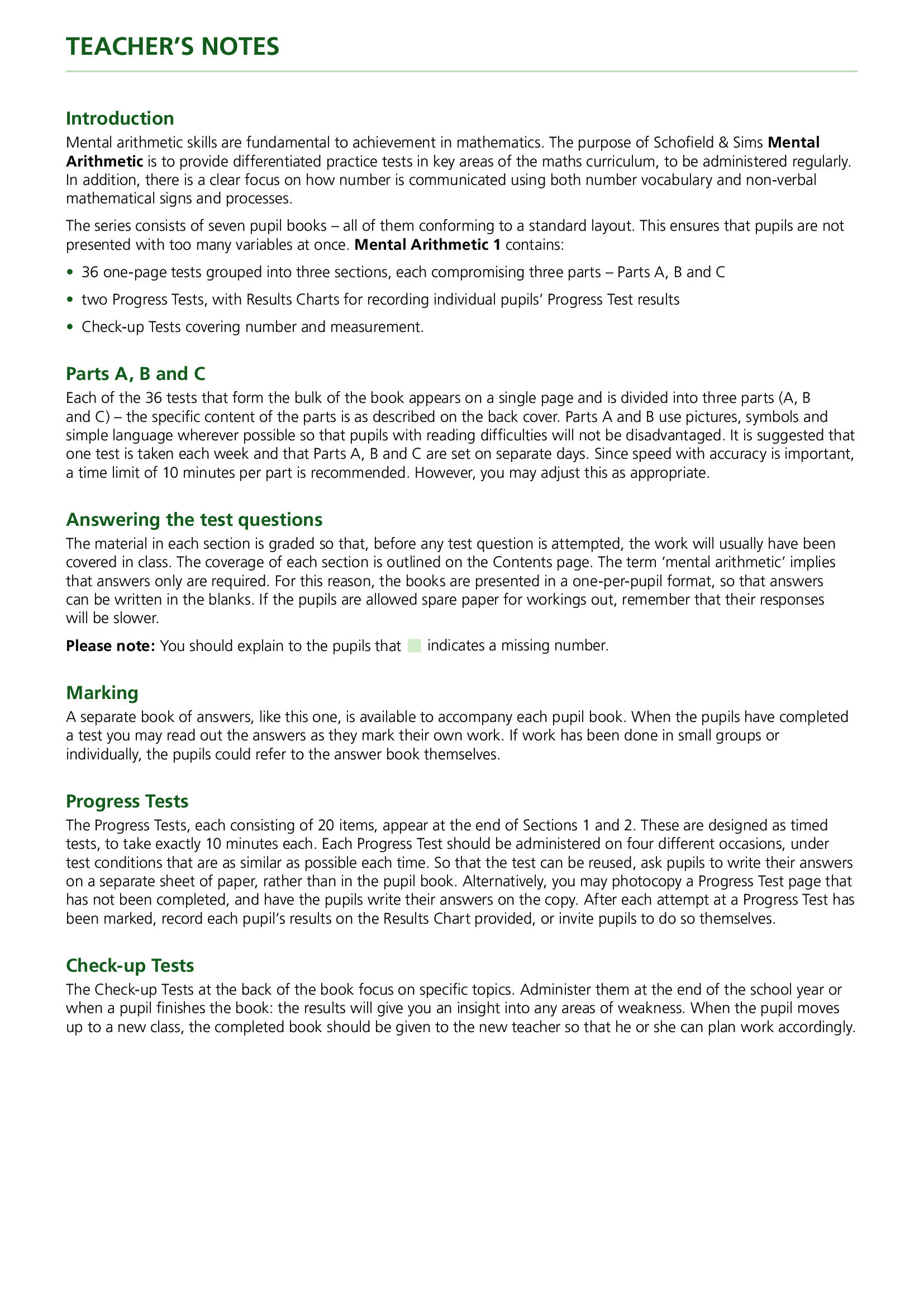 Teacher Guidebook: Mental Arithmetic Teacher's Guide