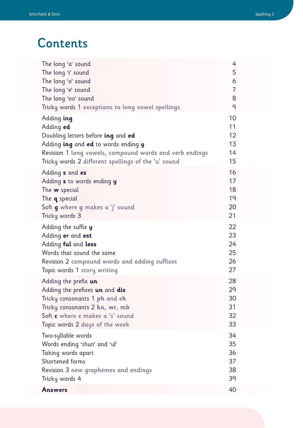 • systematically introduces spelling conventions and revises those already taught