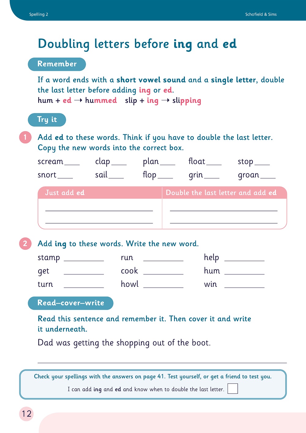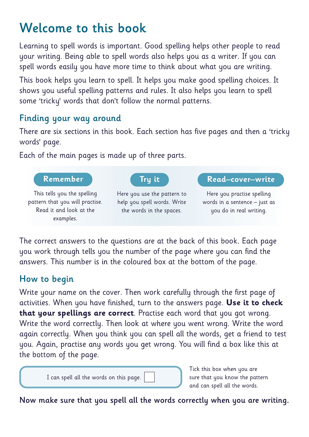 A separate accompanying teacher’s guide, Spelling Teacher’s Guide (ISBN 9780721712185), provides detailed teaching notes that suggest how best to explain and explore each learning point and a separate accompanying teacher’s resource book, Spelling Teacher’s Resource Book (ISBN 9780721712192), contains photocopy masters that support teaching, assessment and record-keeping. A selection of free downloads is also available from the Schofield & Sims website.