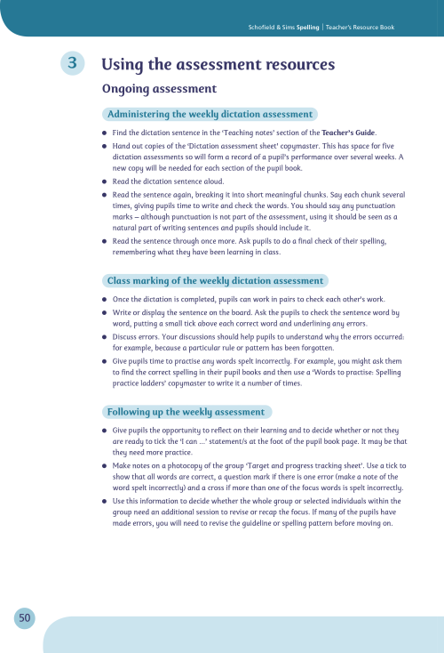 • assessment and record-keeping resources to support on-going and periodic assessment – including Dictation tests, Error analysis sheets, materials for analysing independent writing, and Target and progress tracking sheets.