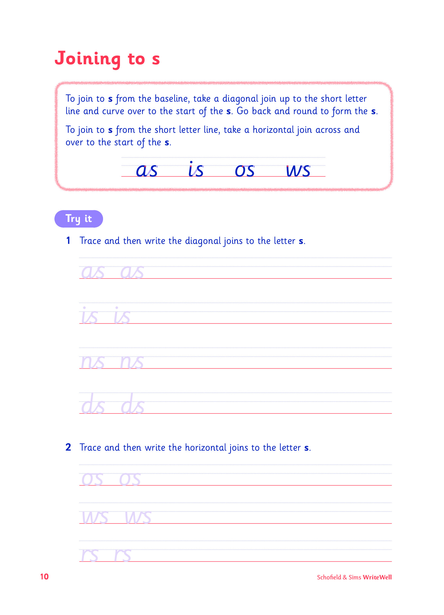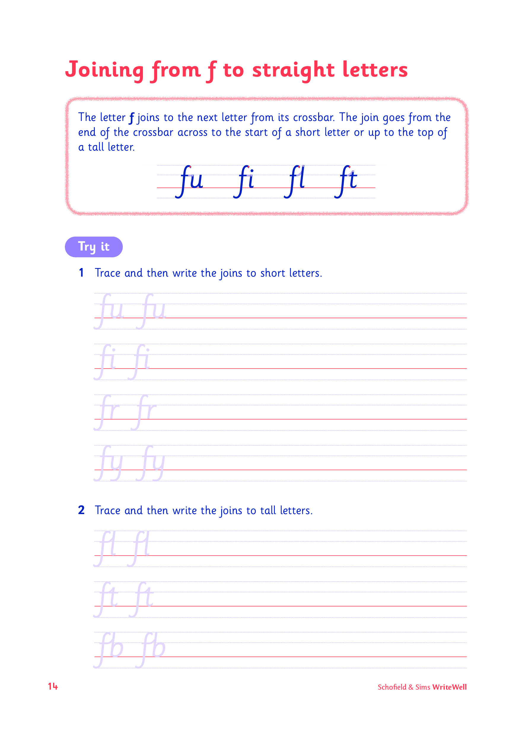 In WriteWell 8: Confident Joining children will learn how to write the more challenging joins, including those involving the letters r, s and f. A separate accompanying teacher’s handbook, WriteWell Teacher’s Handbook, mirrors the structure of the pupil books and contains detailed teaching notes and photocopiable resources to help support the teaching of handwriting. A selection of free online resources is also available from the Schofield & Sims website.