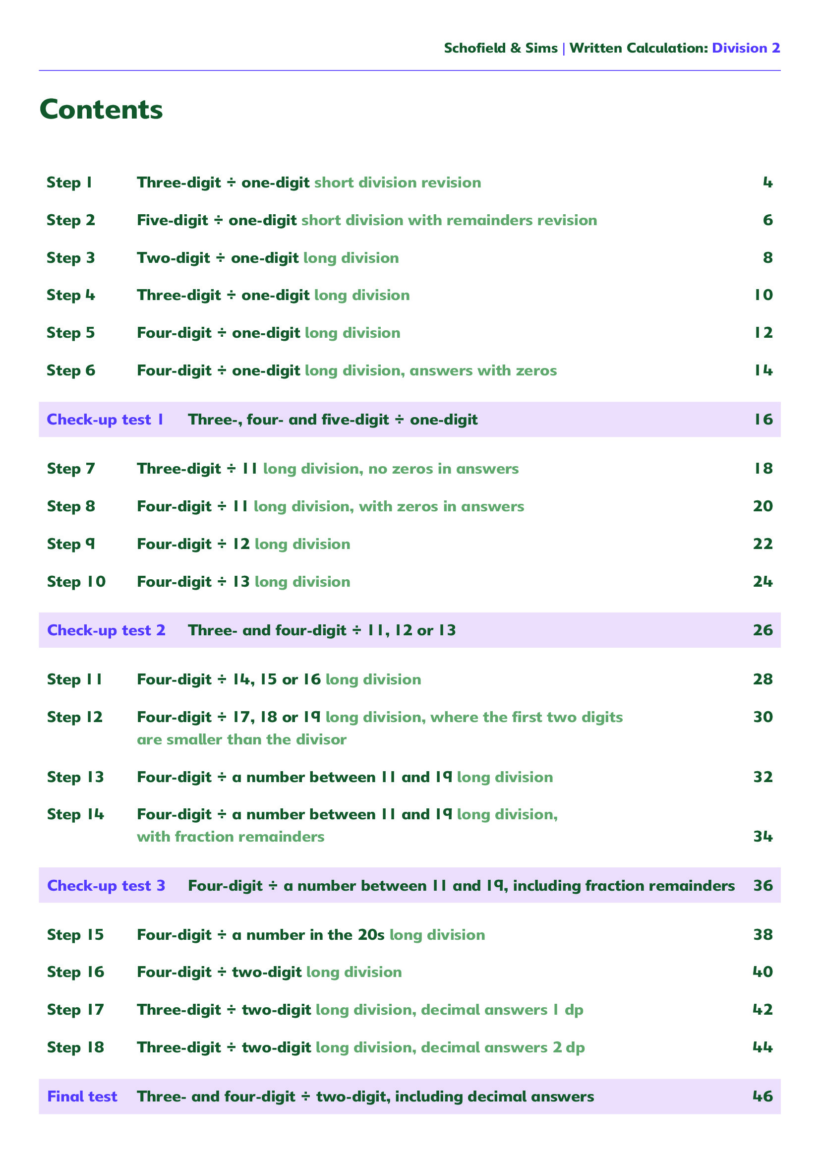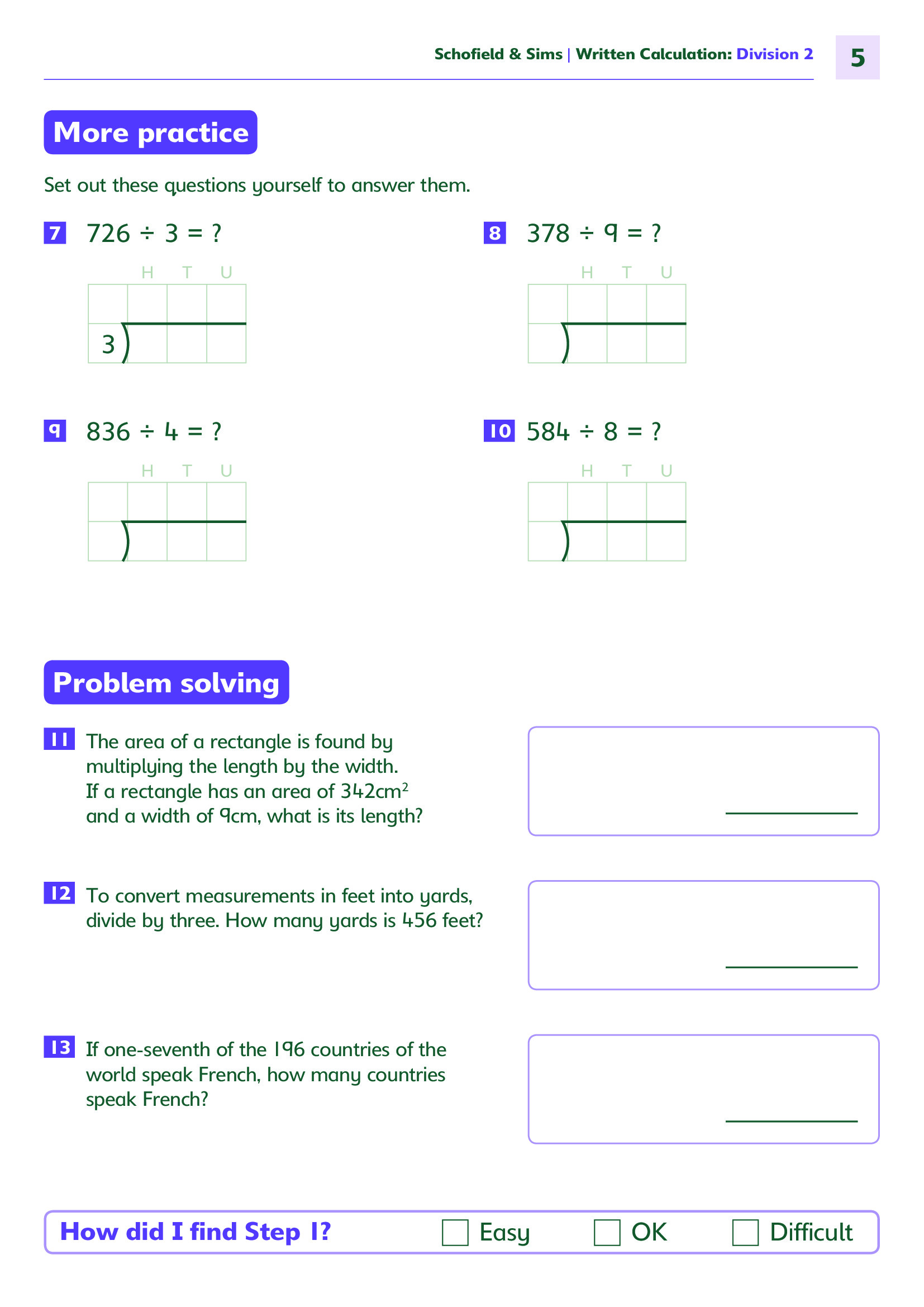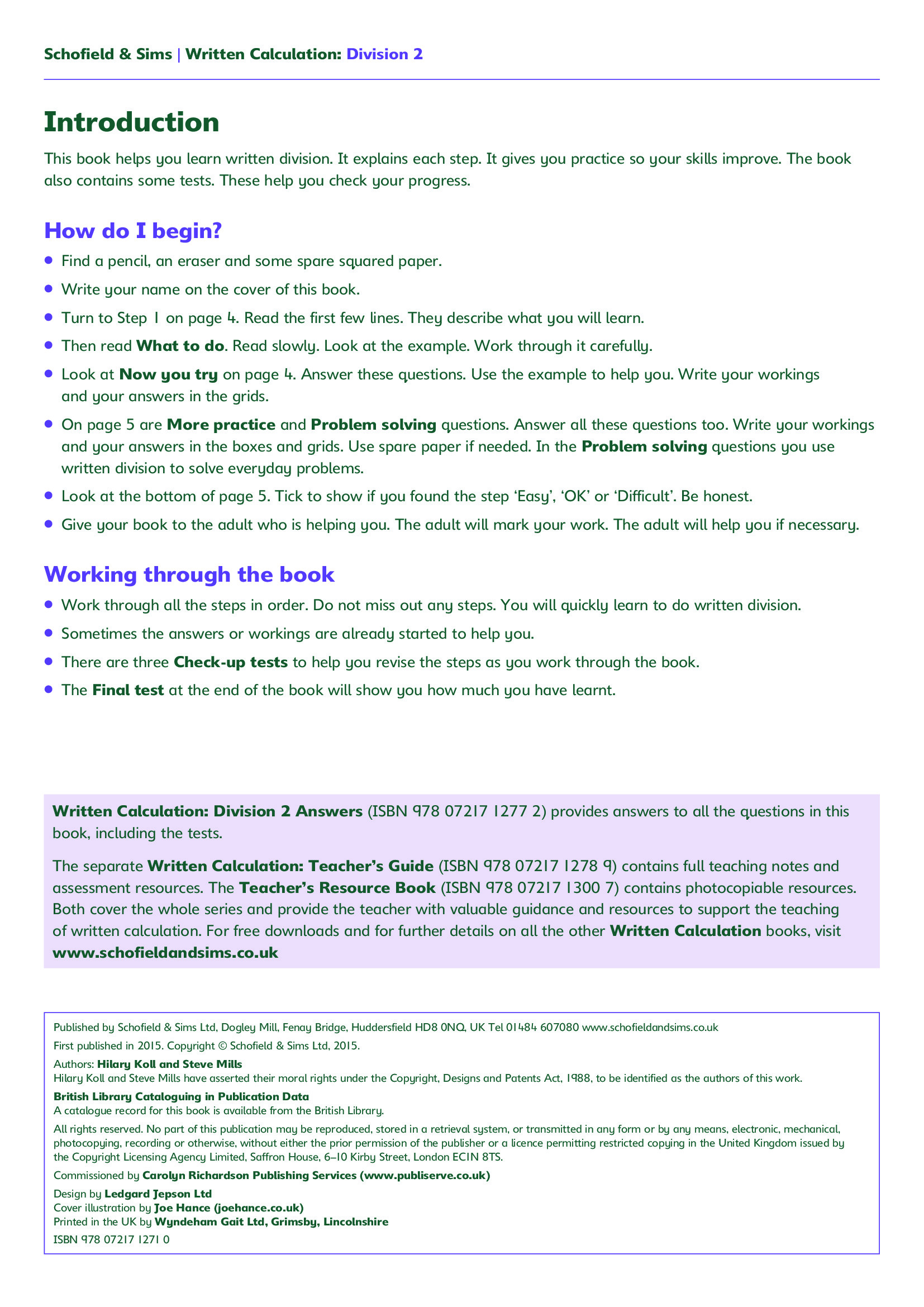 Answer Book: Written Calculation: Division 2 Answers